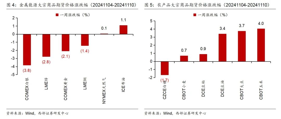 大类钞票方面:(a)好意思债方面,凭据特朗普选举技术表态,共和党上台后将会防卫减税降费,这或会进一步扩大政府的财政赤字和债务鸿沟,进而可能导致通胀水平晋升,导致好意思债长端利率的上行;(b)好意思元方面,特朗普贯彻的晋升关税战略以及松开监管举措均有益于短期好意思元的抬升;(c)原油价钱方面,短期来看,特朗普政府撑捏本国传统化石能源孤立,或会晋升传统能源供给,进而缩小原油价钱,原油价钱短期预期承压,但始终来看原油价钱受中东地点等多种要素扰乱。