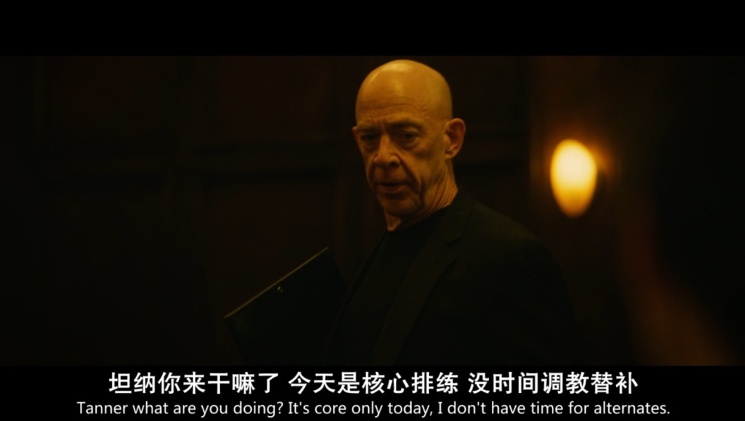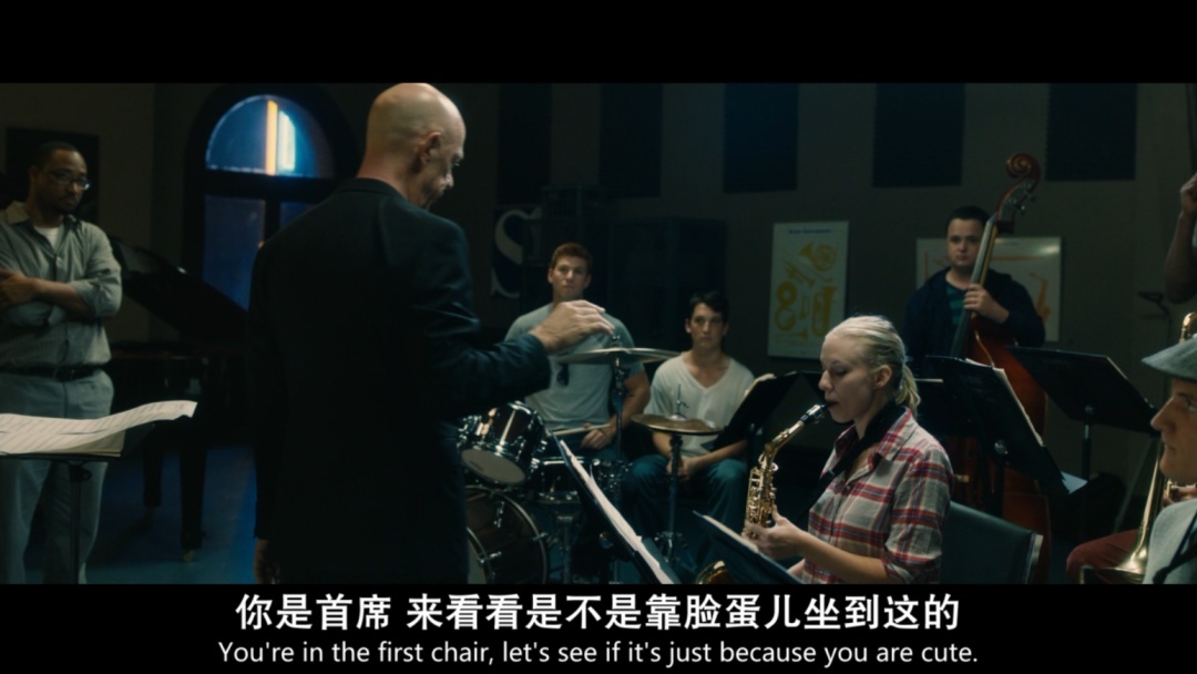 弗莱彻(J·K·西蒙斯 饰)是一所高校的音乐培育,光头,穿的闲静黑,身形笔挺,还有庸碌一幅轻茂东说念主的臭脸。