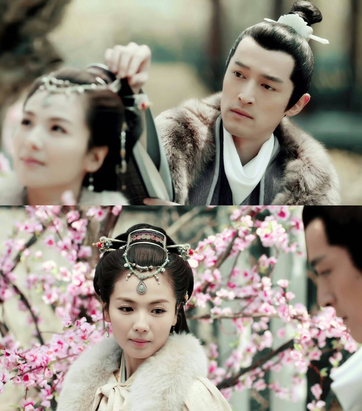又如第十一集中,霓凰和梅长苏站在院子的树下,花瓣轻轻盈落在了霓凰的披风上。