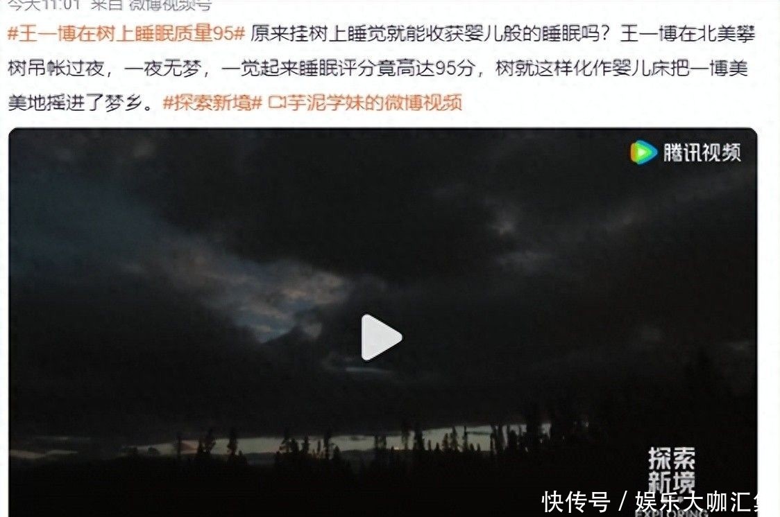 话题#王一博在树上就寝质料95#飞速引爆微博热搜榜,热度打破10万大关,驳斥区涌现大王人留言:“蓝本大自然才是顶级助眠神器”“我也想体验一把树巅入睡的嗅觉”,此事飞速成为全民热议焦点。
