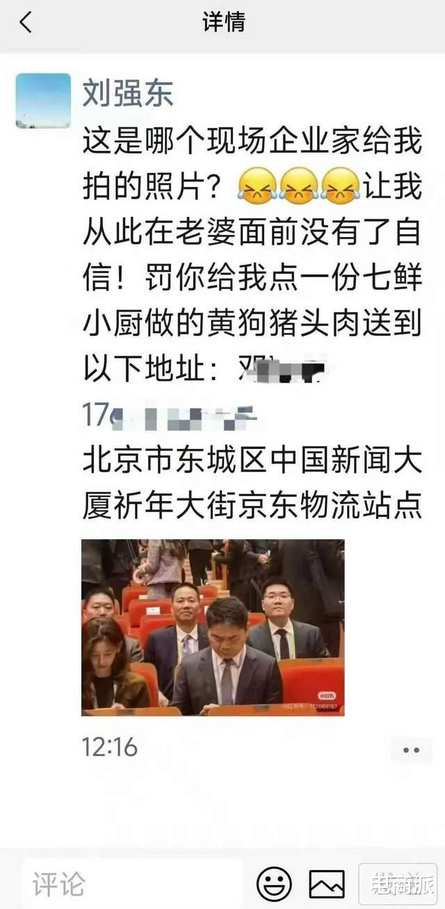 随即,刘强东在一又友圈发文簸弄:“这是哪个现场企业家给我拍的像片?让我从此在浑家眼前莫得了自信!罚你给我点一份七鲜小厨作念的黄狗猪头肉。”随机,对于#刘强东从此在浑家眼前莫得了自信# 的话题冲上微博热搜。