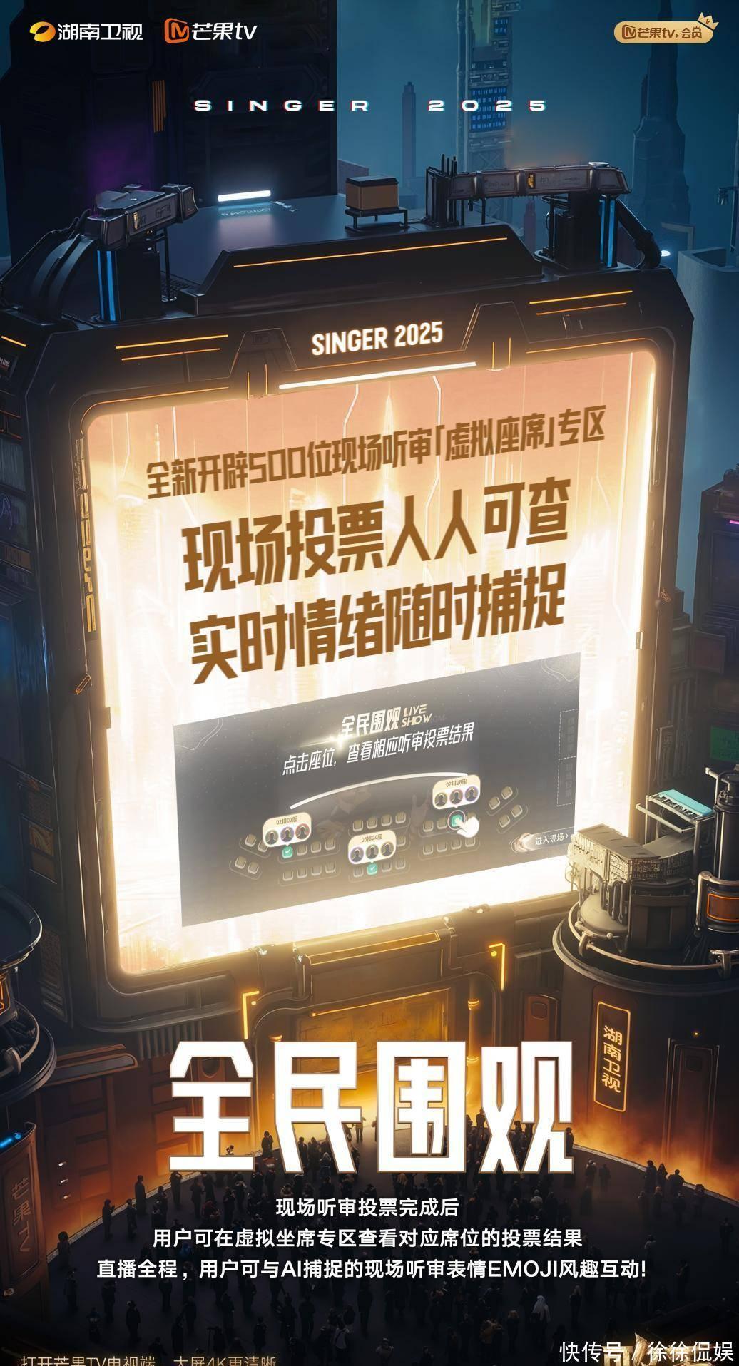 《歌手2025》直播中,现场500位内行听审将化身“臆造坐席”,在线上App直播间呈现。线上用户干与“云入场”格局,即可交加“线上 现场”的空间壁垒,通过臆造坐席直击现场听审团的及时激情及投票动态,张开一场意思拉满、公开透明的“全民围不雅”盛宴。