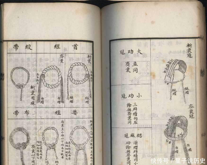 五服包括斩衰、皆衰、大功、小功和缌麻,不同的衣饰不仅材质不同,服丧的技术也各不探求。每一类衣饰都传递着对死人的不同进度的吊问之情,并通过穿戴的技术与形状抒发着亲戚关系的亲密进度。