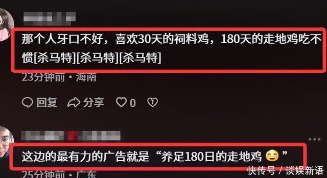 没思到,这样的行为反而赢得了网友的招供和相沿。尤其是全进华一再坚执,岳云鹏和周晓燕两个东说念主坚执的肉质偏老问题。 许多广东网友王人为人师表,默示广东这边如实等于需要吃时分这样长的鸡。 阿谁东说念主牙口不好,心爱30天的饲料鸡,180天的走地鸡吃不惯。 这边最有劲的告白等于“养足180日的走地鸡”。