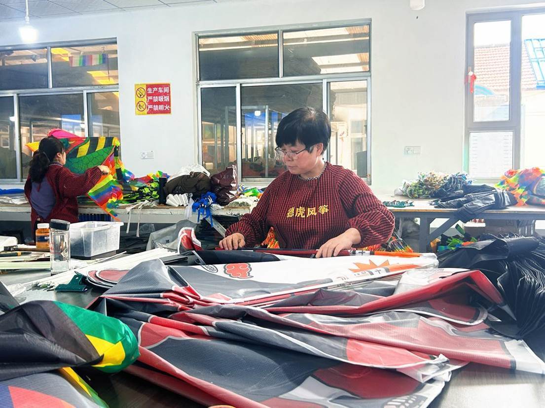 走进村子,机器声雄起雌伏。潍坊鸿鑫风筝有限公司的车间里,十几名女工埋头赶制订单,一只只颜色斑斓的风筝从她们手中“飞”向包装箱。