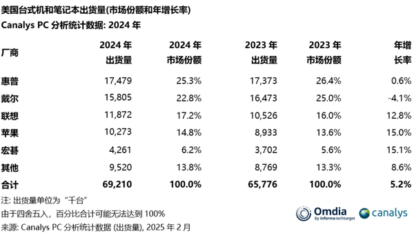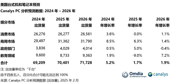 【CNMO科技音尘】3月19日MK体育,市集探求机构Canalys发布的数据标明,2024年第四季度,好意思国PC(不含平板电脑)出货量已毕同比增长6%,总量达到1770万台。据预测,2025年和2026年好意思国PC总出货量的增幅均会略低于2%,出货量将在7000万至7200万台之间波动。